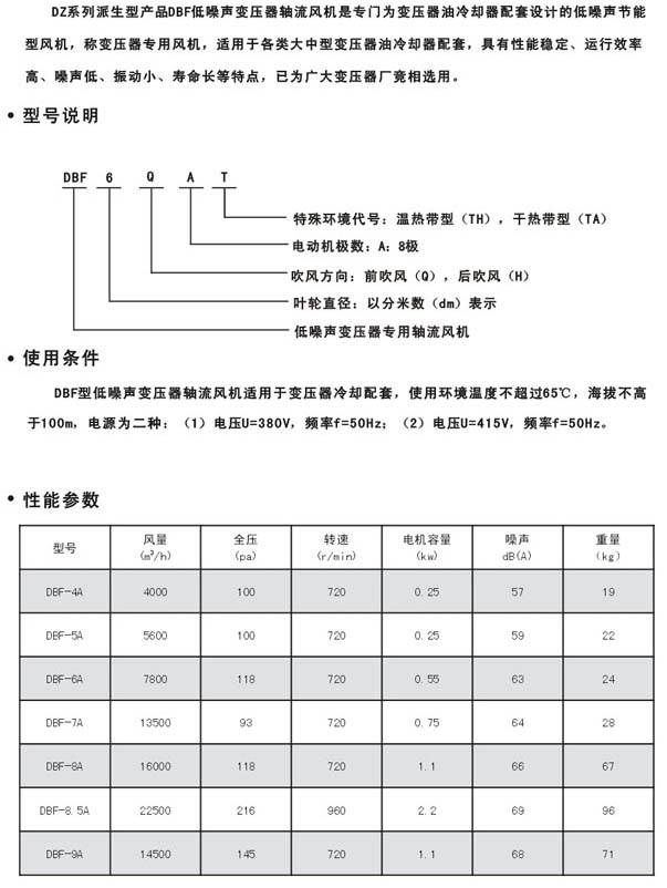 产品名称:DBF型变压器专用风机